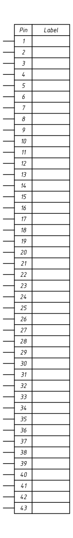 Однорядная штыревая вилка, 43 контакта с шагом 1.27мм