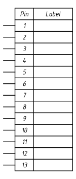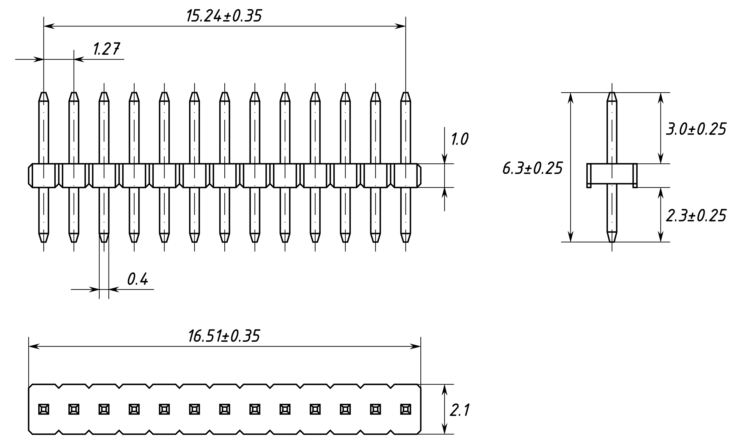 Однорядная штыревая вилка, 13 контактов с шагом 1.27мм