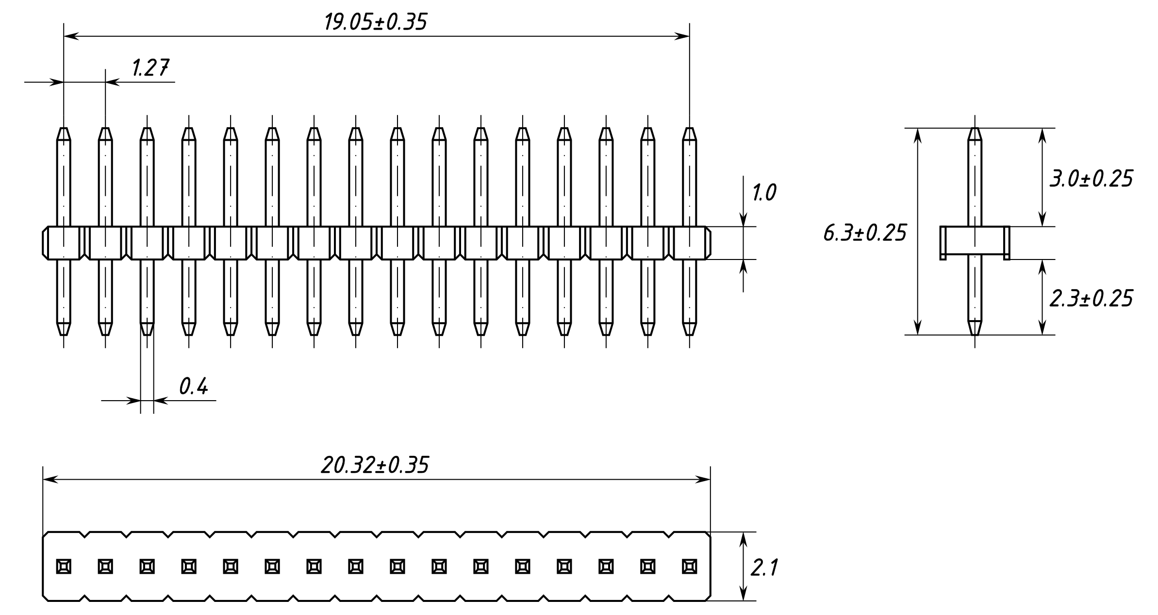 Pin header connector 16x1