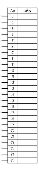 Однорядная штыревая вилка, 25 контактов с шагом 1.27мм