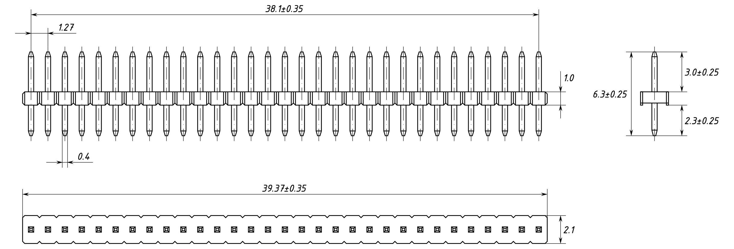 Однорядная штыревая вилка, 31 контакт с шагом 1.27мм