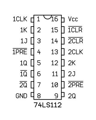 Dual J-K negative-edge-triggered flip flop with preset and clear