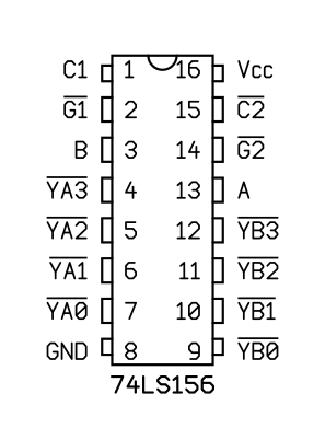 Dual 2-line to 4-line decoder/demultiplexer with open collector outputs