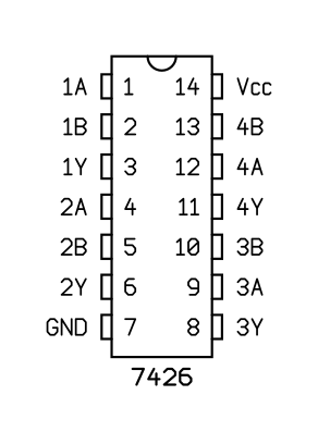 Четыре логических элемента 2И-НЕ с открытым коллектором и повышенным коллекторным напряжением