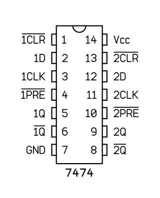 Dual D-type positive-edge-triggered flip flops with preset and clear