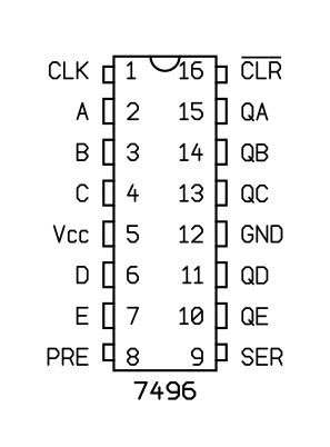 5-bit shift register with parallel-in and parallel-out