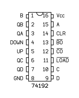 Synchronous 4-bit up/down decade counter with dual clock and clear
