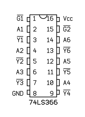 Шесть повторителей с элементом управления по входам, инверсией и тремя состояниями на выходах