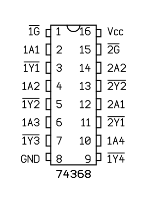 Шесть повторителей с инверсией и тремя состояниями на выходах